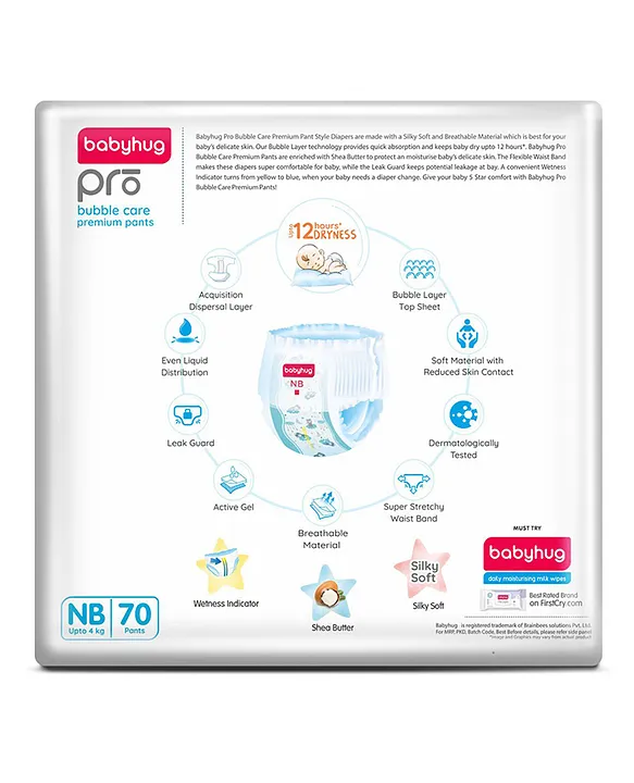Babyhug NB Pro Bubble Care Premium Pant Style Diapers Delight | 12 Hour Powerful Soft Newborn Protection