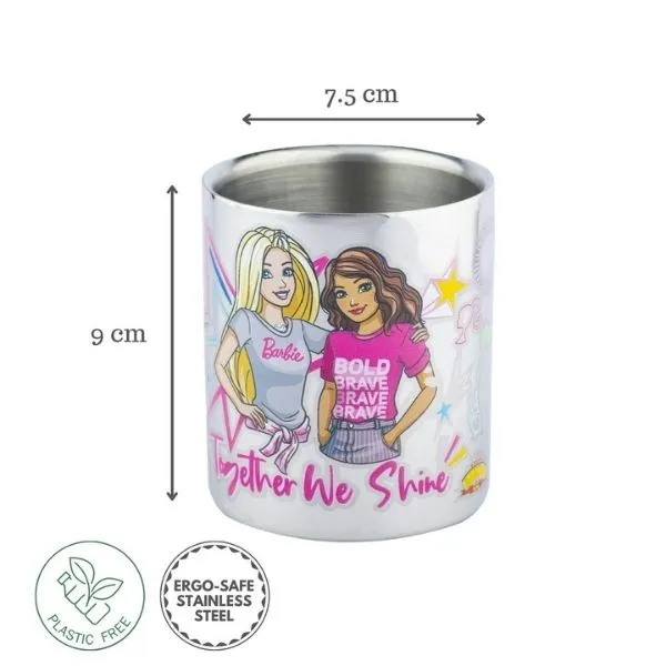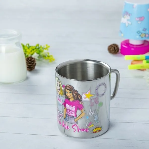 Make sipping more fun with the Barbie Stainless Steel Colour Mug, designed for little Barbie fans who love all things pretty and pink. Crafted with high-quality Stainless Steel Grade 202, this double-wall mug keeps drinks at the perfect temperature while being safe and easy to handle for children.