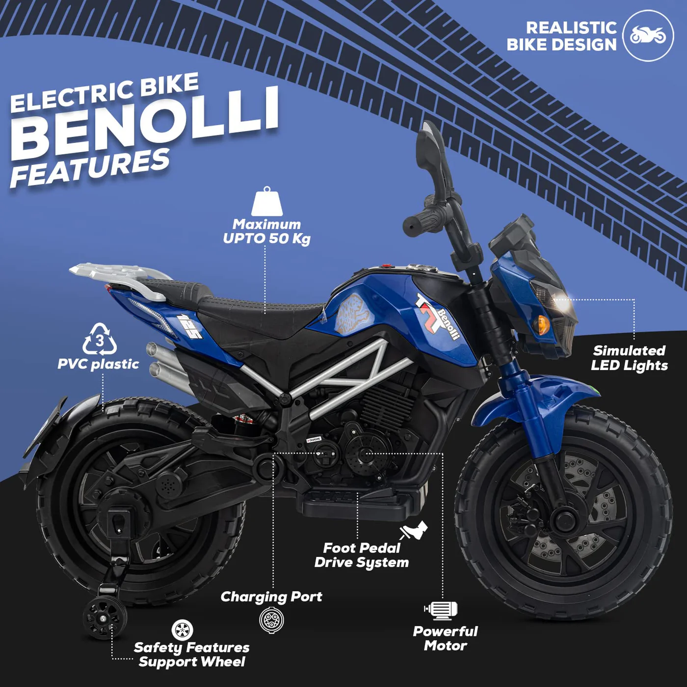 The battery operated ride on bike gives kids a fun way to explore indoor and outdoor spaces with confidence. This Benolli bike comes with bright lights, playful music, and smooth controls that make riding easy even for beginners. Children enjoy the feeling of driving on their own, and the strong design keeps them safe during every ride. The bike looks stylish in Blue and Red, making it a favorite for young riders who love adventure and excitement.