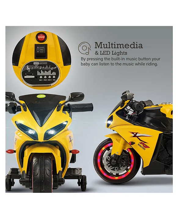 Turn heads with the bright and cheerful Battery Operated Ride-on R7 Bike in Yellow—a perfect ride for curious and energetic kids. Whether it’s their first ride-on or a new addition to their toy collection, this bike brings joy, confidence, and fun with every use.