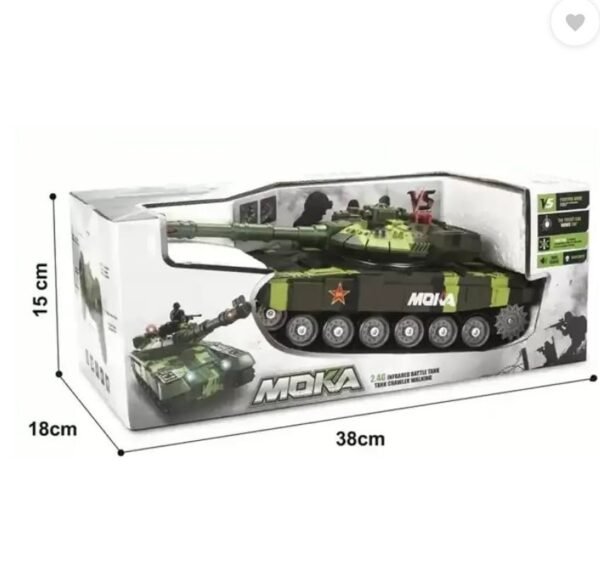 The Bigfun Moka Infrared Ray RC Tank brings thrilling combat play to life with its infrared shooting system, rotating turret, and realistic sound effects. Designed in 1:18 scale with powerful motorized tracks, this tank navigates smoothly over all terrains and is perfect for solo missions or multiplayer battle mode with other tanks.