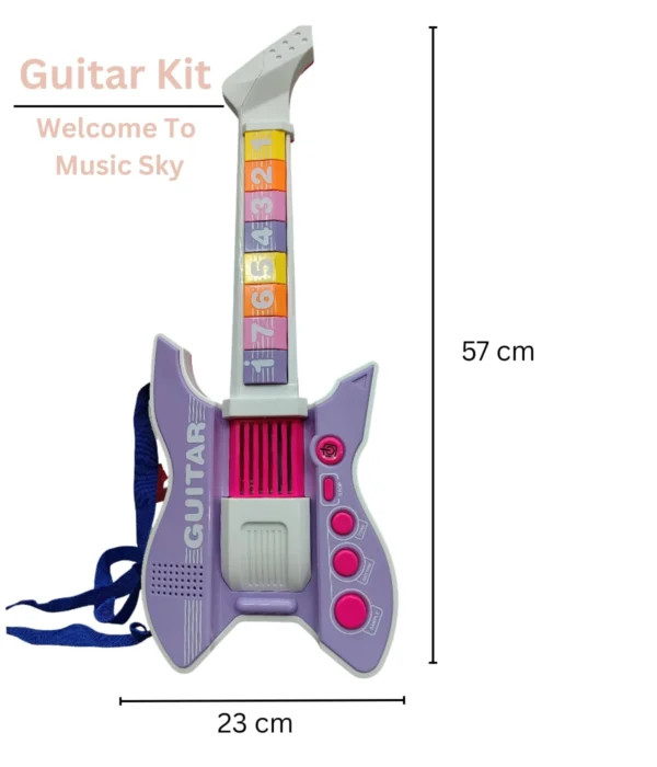 The BRAVIA Kids Musical Guitar with Mic and Music Model 079 brings a playful start to early music learning. Kids love the bright lights and lively sounds. It feels like a mini stage experience right at home. This kids musical guitar toy keeps little ones excited as they explore music and movement.
