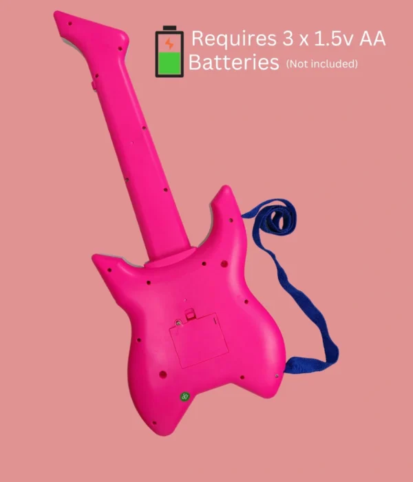 Play should begin fast. That is why the guitar runs on simple AA batteries. No cables. No setup. Just insert the batteries and it starts instantly. Kids can move around freely and enjoy uninterrupted play.