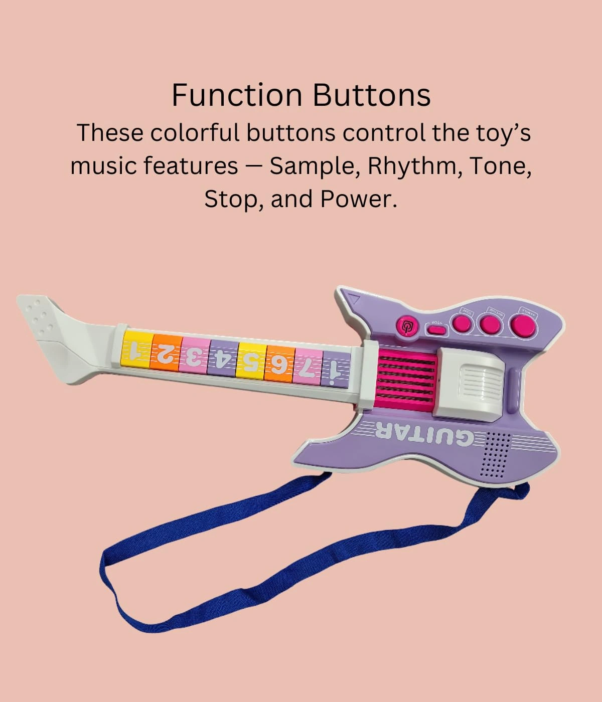 Music grows with kids in simple, natural ways. This kids musical guitar toy helps them focus, coordinate, and express themselves. They tap the buttons, hold the mic, and match the rhythm. It becomes a small activity that builds hand-eye coordination and confidence over time. Kids get joy from making their own sounds and pretending to perform.