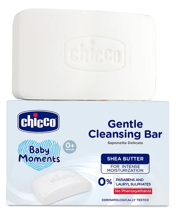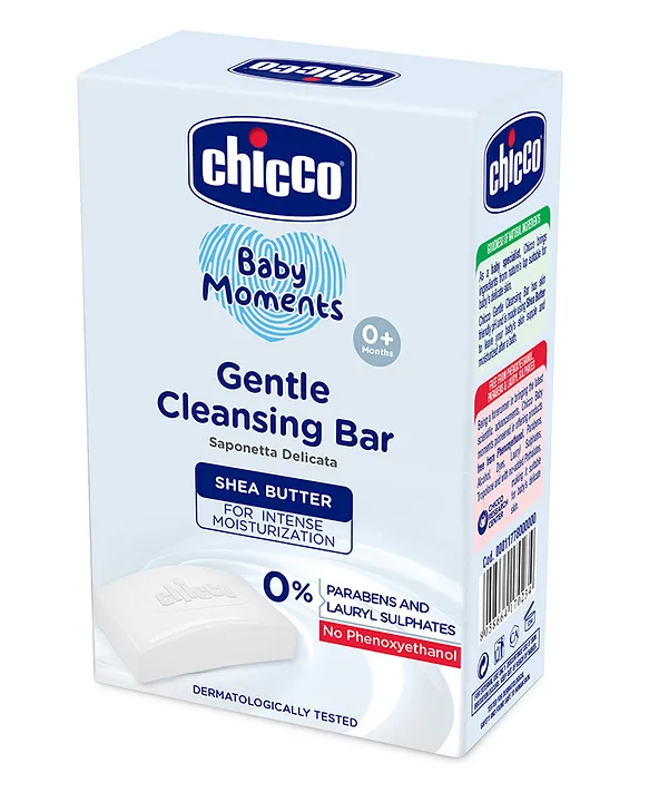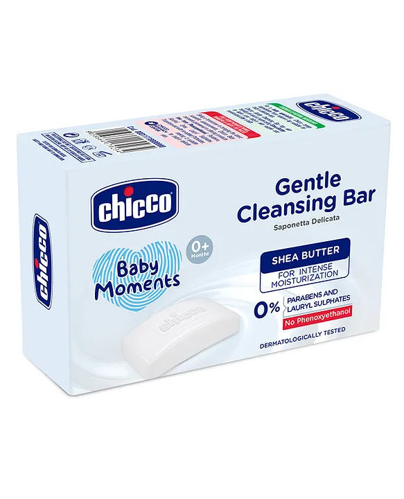 Keep your baby’s delicate skin soft, clean, and nourished with the Chicco Baby Moments Gentle Cleansing Bar. Enriched with the goodness of Shea Butter, this baby soap provides deep moisturization and leaves the skin feeling smooth after every bath. Specially crafted for newborns and sensitive skin, it is dermatologically tested and completely free from harmful chemicals such as parabens, phenoxyethanol, alcohol, sulphates, dyes, and phthalates – making it safe for everyday use.