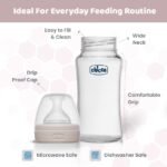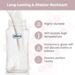 The Chicco Well-Being Glass Feeding Bottle offers a healthy and soothing feeding experience for your baby. Crafted from high-quality borosilicate glass, this bottle is resistant to thermal shock, durable, and entirely BPA-free—ensuring complete safety with every feed.