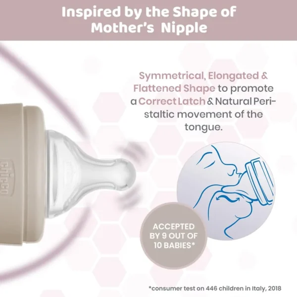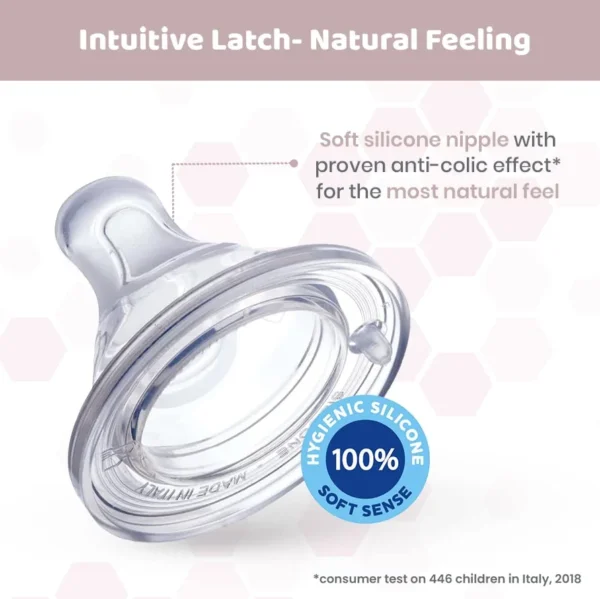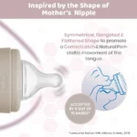 Thoughtfully designed to mimic the natural feel of breastfeeding, the bottle’s teat supports a natural latch and includes an anti-colic valve to minimize air intake, reducing gas and discomfort. The bottle’s ergonomic shape provides a comfortable grip for both parents and little hands, making it a perfect everyday feeding companion.