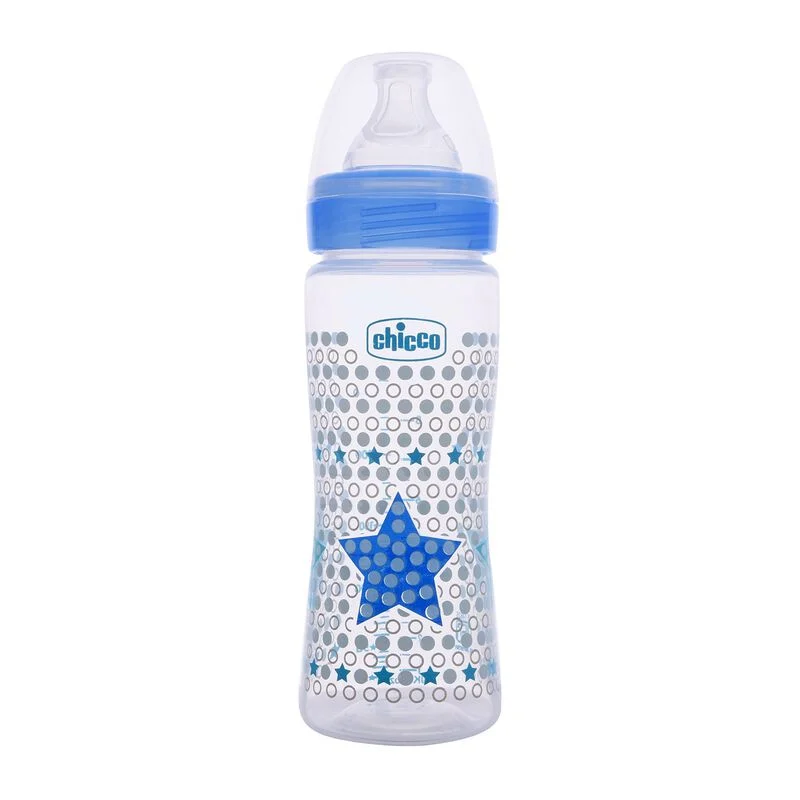 The Chicco Wellbeing Feeding Bottle (330 ml, Fast Flow) is designed for a smooth and comfortable feeding experience. Its Physio teat, inspired by a mother’s nipple, promotes the natural sucking motion, making the transition between breastfeeding and bottle-feeding effortless. The advanced anti-colic system reduces air ingestion, minimizing colic, regurgitation, and fussiness. Made from BPA-free polypropylene, the bottle is safe, hygienic, and leakproof. Ergonomically designed for tiny hands, with a wide neck for easy filling and cleaning, it is ideal for daily feeding routines. Available in Blue, Pink, and Green.