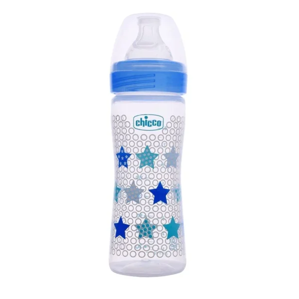 The Chicco Wellbeing Feeding Bottle (330 ml, Fast Flow) is designed for a smooth and comfortable feeding experience. Its Physio teat, inspired by a mother’s nipple, promotes the natural sucking motion, making the transition between breastfeeding and bottle-feeding effortless. The advanced anti-colic system reduces air ingestion, minimizing colic, regurgitation, and fussiness. Made from BPA-free polypropylene, the bottle is safe, hygienic, and leakproof. Ergonomically designed for tiny hands, with a wide neck for easy filling and cleaning, it is ideal for daily feeding routines. Available in Blue, Pink, and Green.