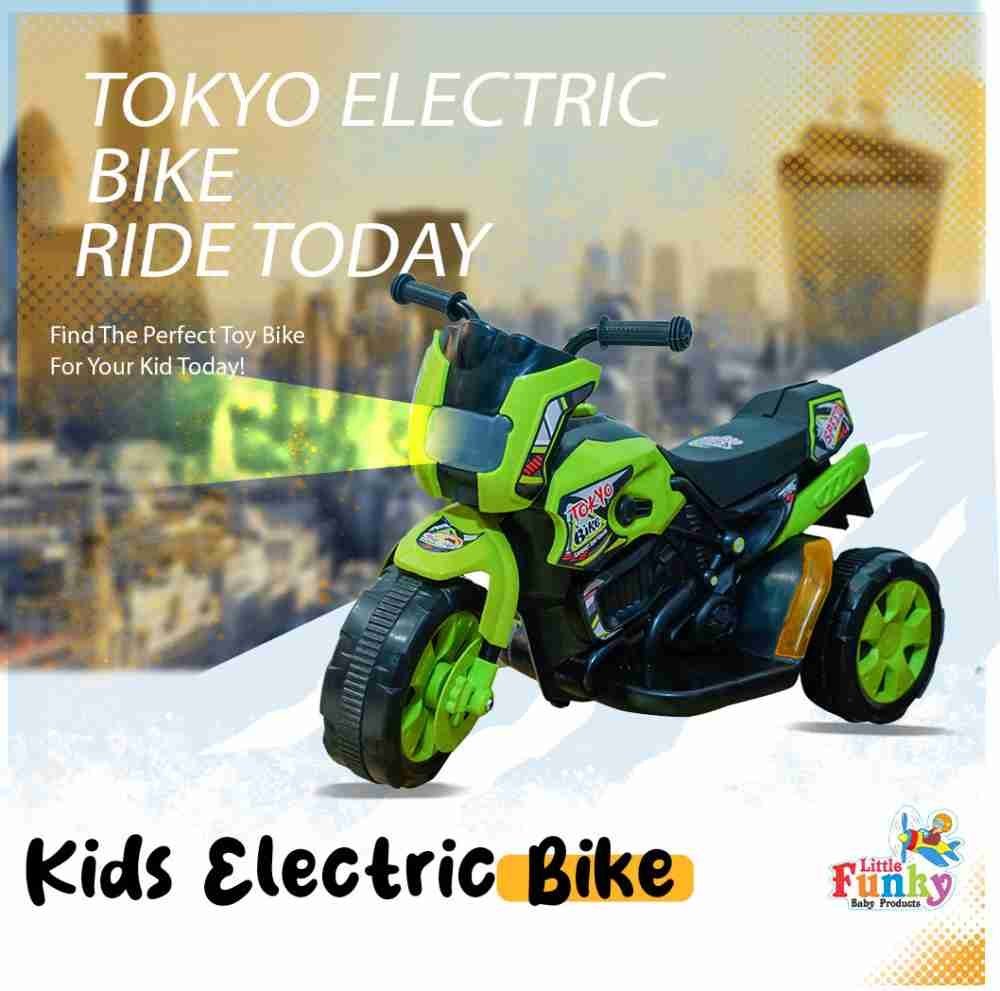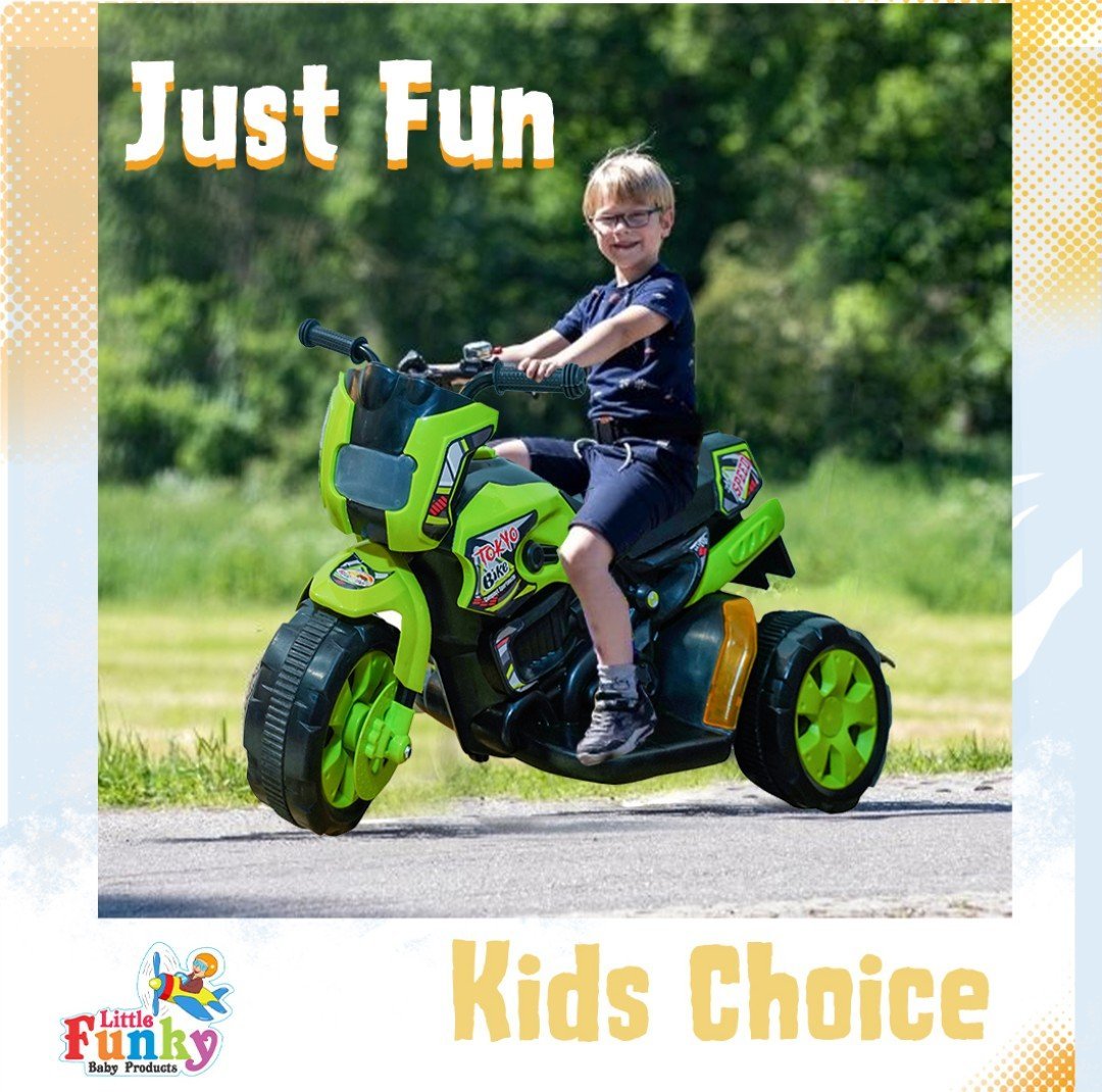 Let your little one zoom into a world of excitement with the Electric Tricycle Tokyo Bike – Green, a fun-packed ride-on vehicle designed for toddlers and young kids. This motorised electric bike comes with a pre-installed battery and motor, making it ready to ride straight out of the box.
