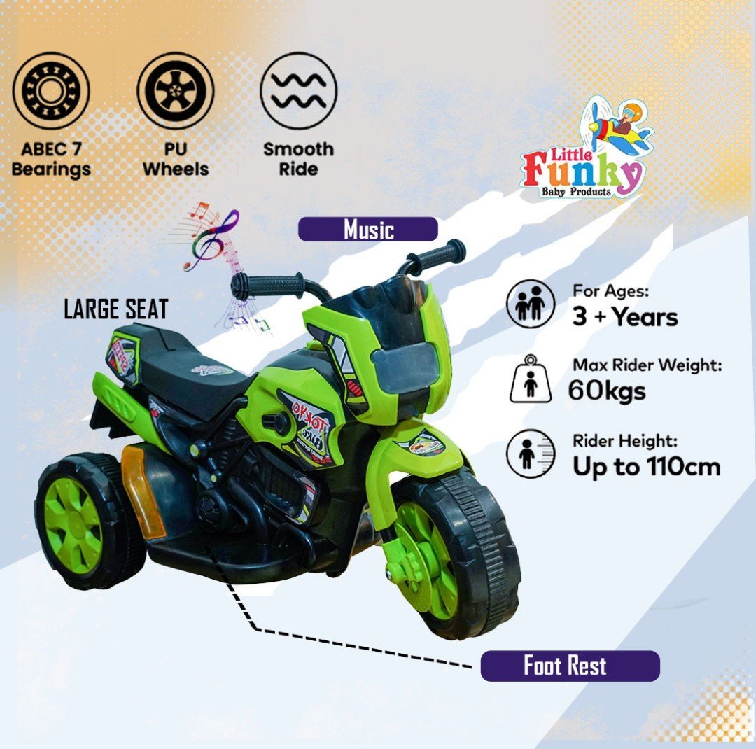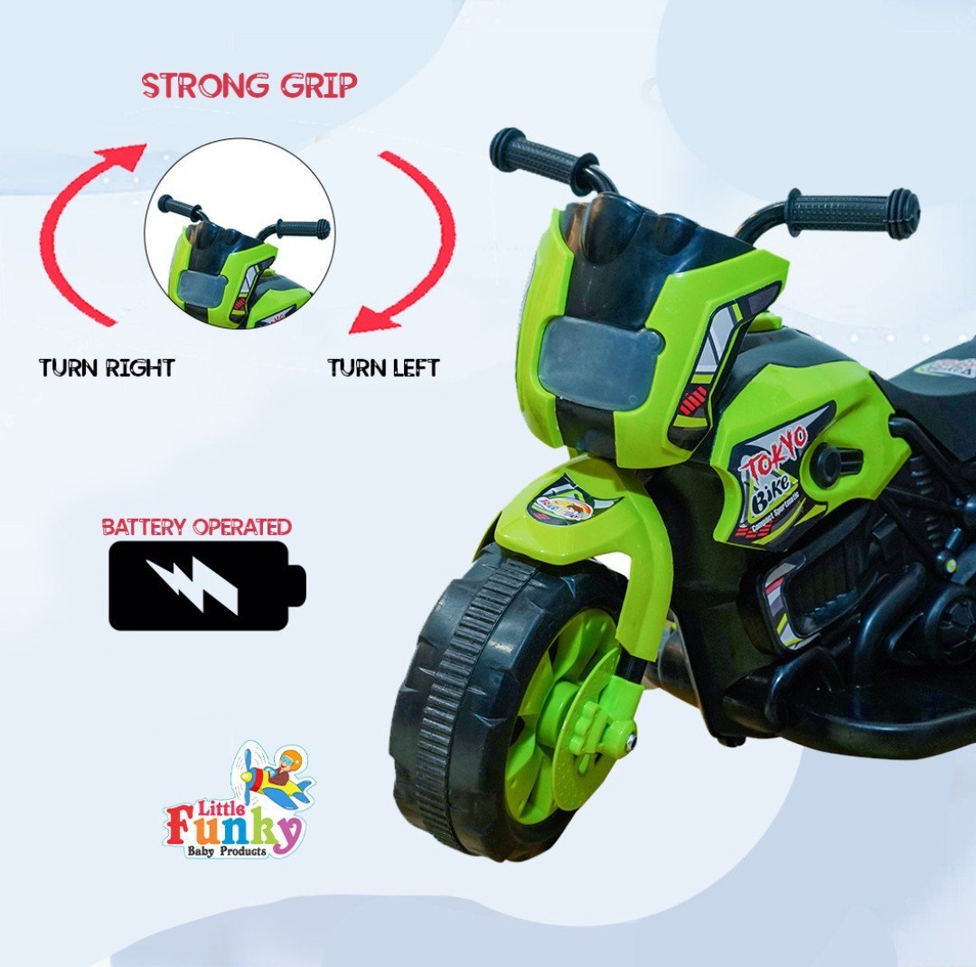 Let your little one zoom into a world of excitement with the Electric Tricycle Tokyo Bike – Green, a fun-packed ride-on vehicle designed for toddlers and young kids. This motorised electric bike comes with a pre-installed battery and motor, making it ready to ride straight out of the box.