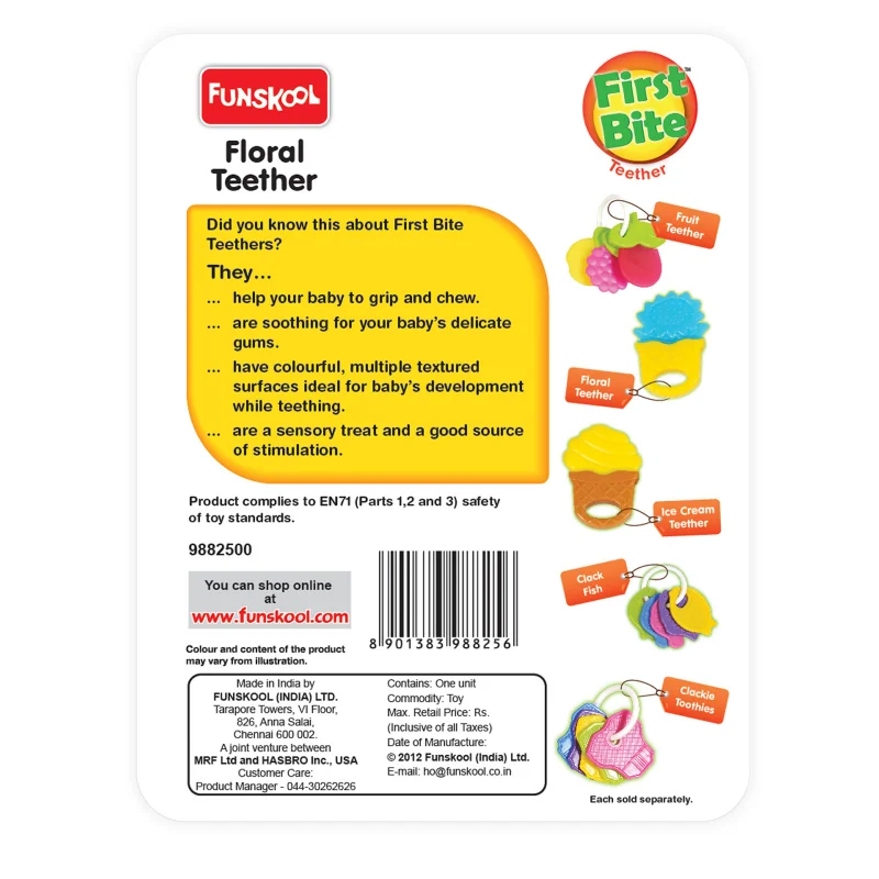 Made from PVC-free, non-toxic materials, the Floral Teether is gentle and safe for babies to chew. Its bright, floral design not only soothes teething pain but also keeps your baby visually engaged. The lightweight shape and soft edges offer a comfortable grip, helping to develop fine motor skills while providing soothing relief.