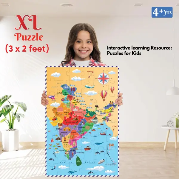 Featuring a vibrant and large-sized map layout, this jigsaw puzzle offers hours of brain-boosting fun while introducing children to the rich diversity of India. It enhances memory, concentration, and problem-solving skills as kids connect each piece to complete the beautiful map.