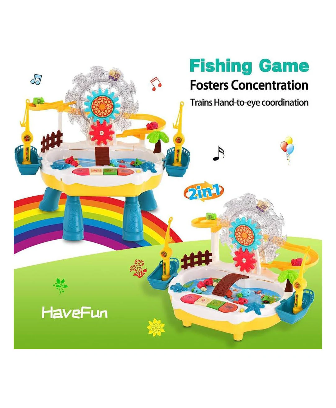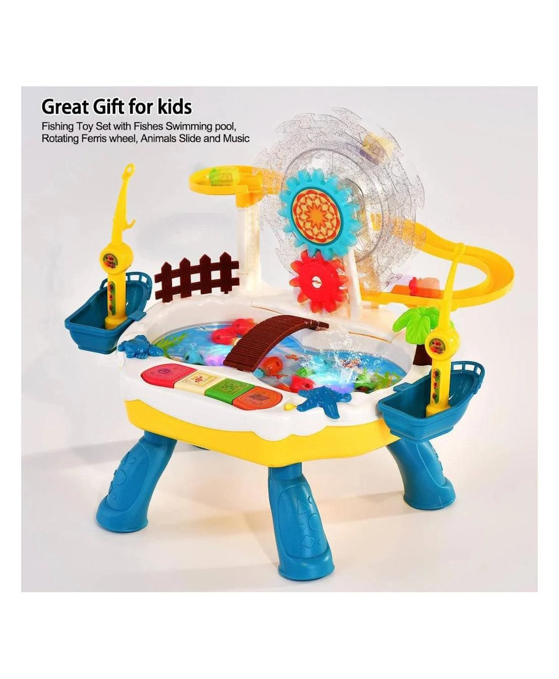 The Happy Fishing Multi-Purpose Toy Set turns playtime into a joyful learning experience. With a rotating Ferris wheel, cute animal slides, and musical fishing pond, this set keeps kids entertained while improving motor skills and hand-eye coordination.