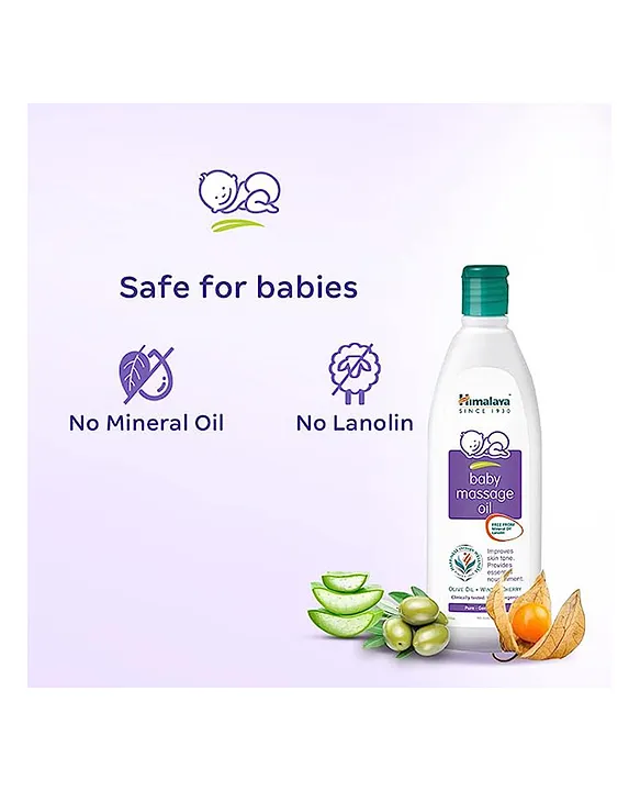 Give your baby the gift of healthy skin and overall growth with Himalaya Baby Massage Oil. Infused with the natural goodness of Olive Oil (rich in Vitamin E) and Winter Cherry, this light, non-staining oil is clinically proven to be mild and safe for newborns.