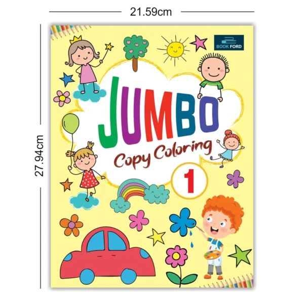 Make coloring time extra fun with the Jumbo Copy Coloring Book – Part 1 by Bookford Publications! Specially crafted for young minds aged 2 to 8 years, this 64-page paperback offers a wide variety of engaging images that help improve fine motor skills, concentration, and creativity.