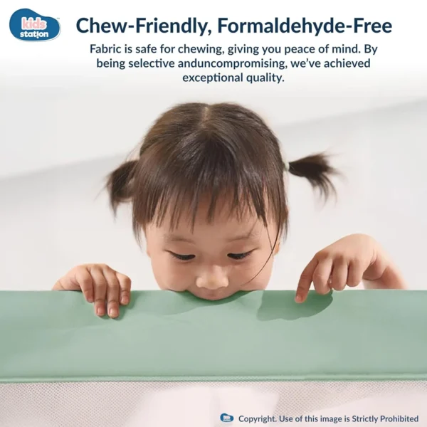 Babies roll, crawl, and move in their sleep. This rail guard prevents them from accidentally rolling off the bed. The mesh fabric keeps them safe without blocking airflow. The secure locking system helps the rail stay firm even when pressure is applied. The rail height protects toddlers who stand and move during early walking stages.