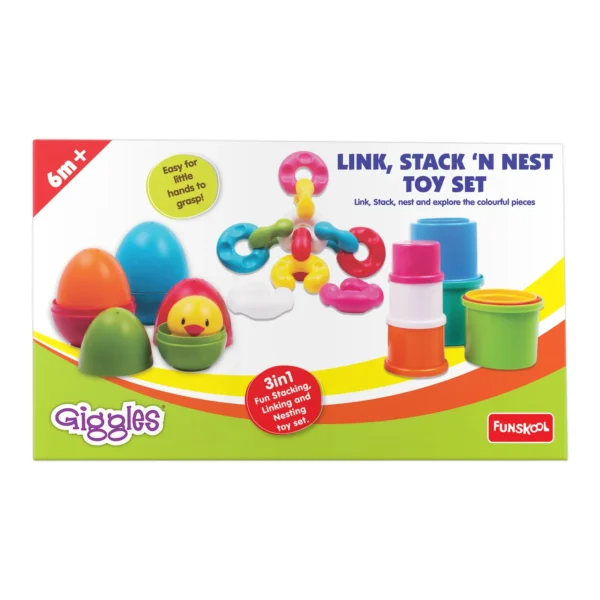 Encourage hands-on exploration and imaginative play with the Link Stack ‘N Nest Toy Set – a vibrant 3-in-1 activity kit that combines linking, stacking, and nesting in one colorful bundle!