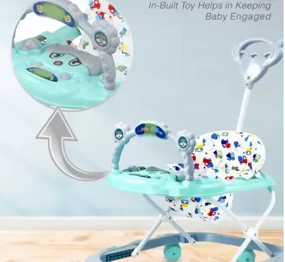 Crafted from durable plastic and iron, it is both lightweight and stable. Its foldable design makes it easy to store or take along during travel. With an adjustable height setting, this walker grows with your baby, making it the perfect companion from crawling to walking.