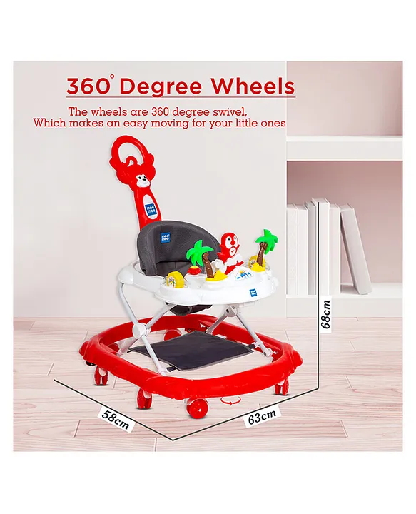 Support your little one’s first milestones with the Mee Mee 360° Baby Activity Walker, thoughtfully designed to combine safety, play, and growth. This walker features a 360-degree swivel seat that allows your baby to explore their surroundings fully, while the three-level adjustable height ensures a perfect fit as they grow.