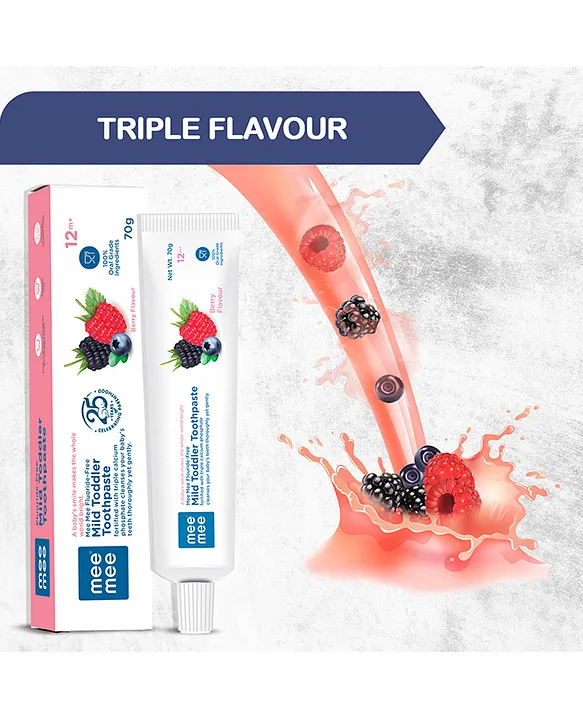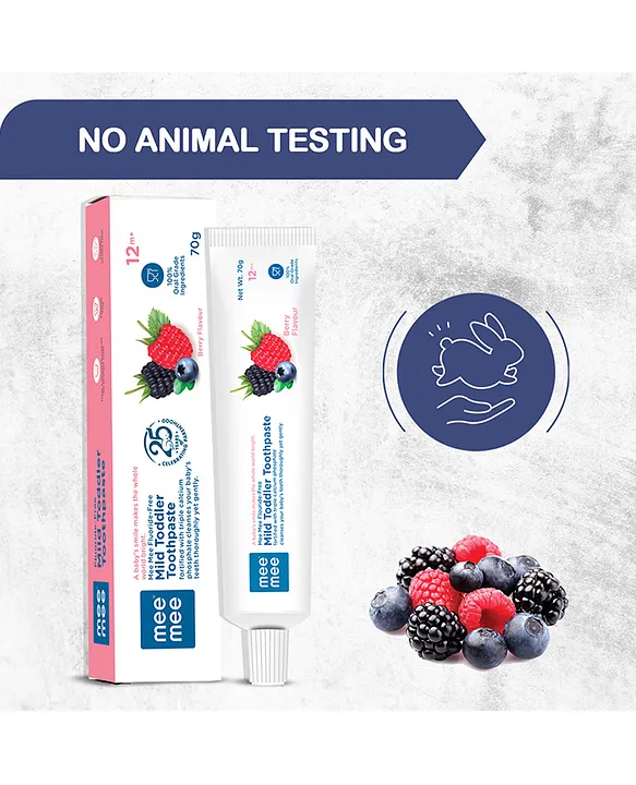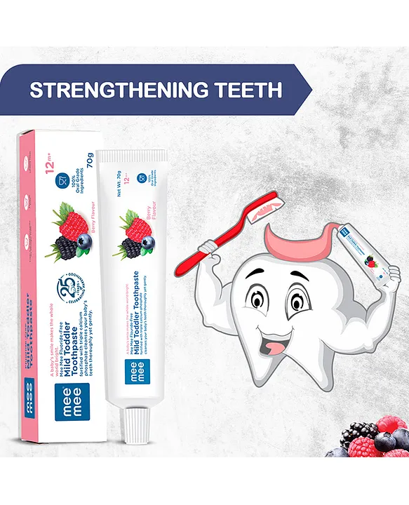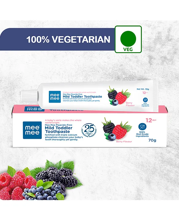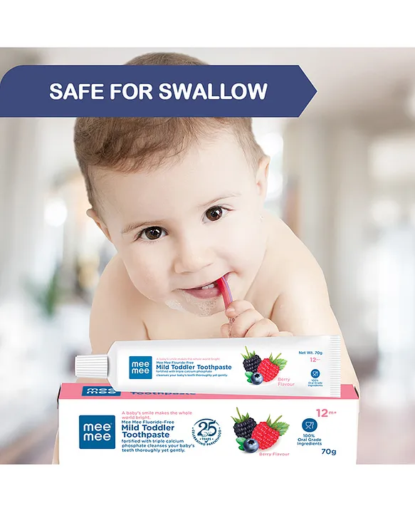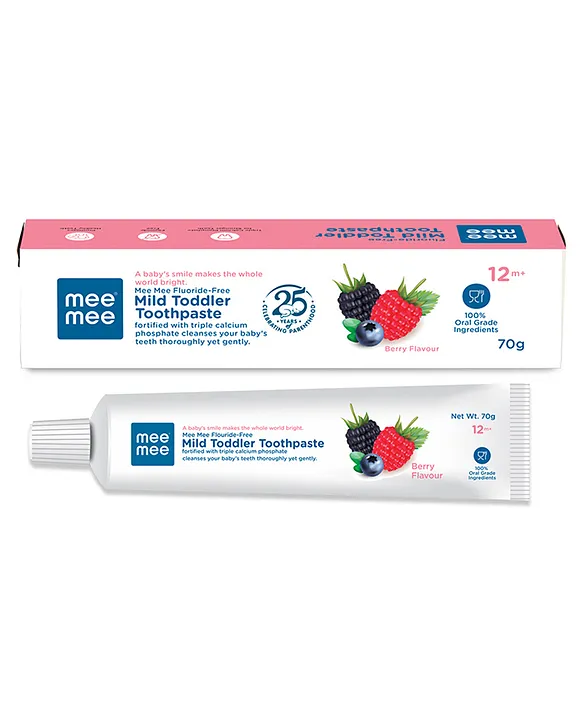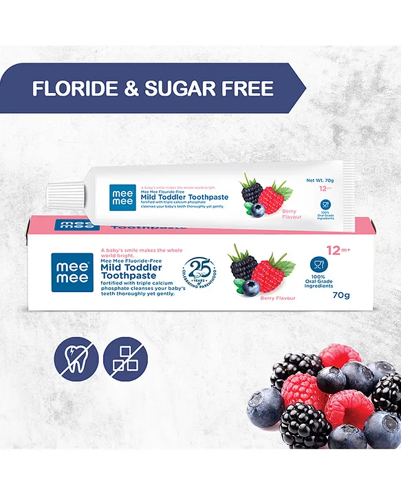 Turn brushing into a fun and healthy routine with Mee Mee Fluoride-Free Berry Flavor Toothpaste. Specially designed for children above 12 months, this gentle toothpaste is fluoride-free, sugar-free, and enriched with calcium & phosphate to strengthen teeth and protect gums. The tasty berry flavor makes kids look forward to brushing while ensuring safe and effective oral care every day.
