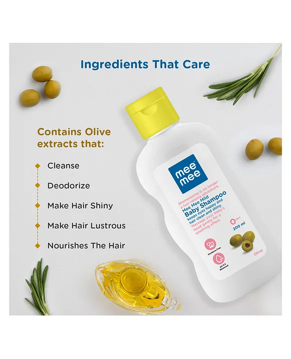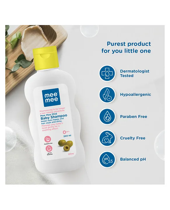 Give your baby’s delicate hair the gentle care it deserves with Mee Mee Mild Baby Shampoo. Formulated with a tear-free formula, this shampoo makes bath time a happy and comfortable experience for your little one. Enriched with the goodness of olive extracts, it locks in natural oils, nourishes the scalp, and keeps hair soft, shiny, and tangle-free. Its hypoallergenic and dermatologically tested formula ensures complete safety, making it suitable for use right from birth. Gentle, toxin-free, and microbiologically tested, this baby shampoo strengthens and moisturizes your baby’s hair while promoting healthy growth.