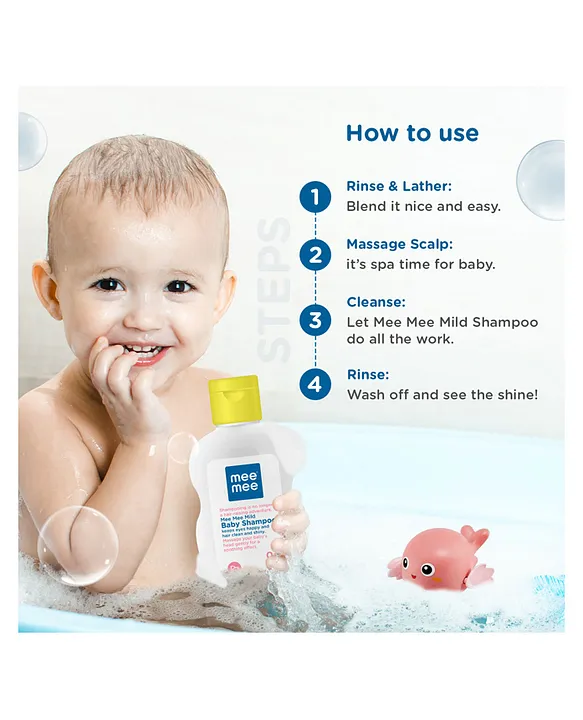 Take a coin-sized amount in your palm and gently massage into your baby’s wet hair. Rinse thoroughly with lukewarm water and towel dry for soft, shiny, and manageable hair.