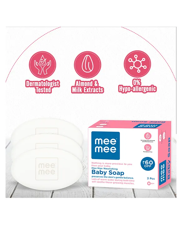 Give your little one’s skin the gentle care it deserves with Mee Mee Nourishing Baby Soap, enriched with the goodness of Almonds & Milk extracts. This dermatologically tested soap helps preserve the skin’s natural balance, keeping it soft, radiant, and well-moisturized. With a mild fragrance and a paraben-free formula, it ensures safe, healthy, and refreshing cleansing for your baby’s delicate skin.