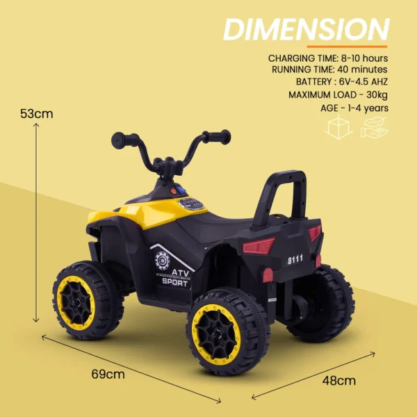 Get ready for an action-packed ride with the Monster ATV Electric Kids Bike! Designed to thrill, this battery-operated ride-on bike combines cool looks with exciting features like LED lights, built-in music, and USB connectivity. Whether it’s a backyard safari or a driveway race, this ATV keeps your little rider entertained and active.