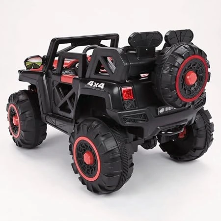 Let your little one rule the road with the Monster Wheel 4X4 BQ 2188 Ride-on Jeep in a bold Red color. Built for adventurous kids, this battery-operated jeep offers a thrilling off-road experience right at home. With its 4-wheel drive styling, LED headlights, music system, and sturdy design, it ensures hours of safe and exciting fun.