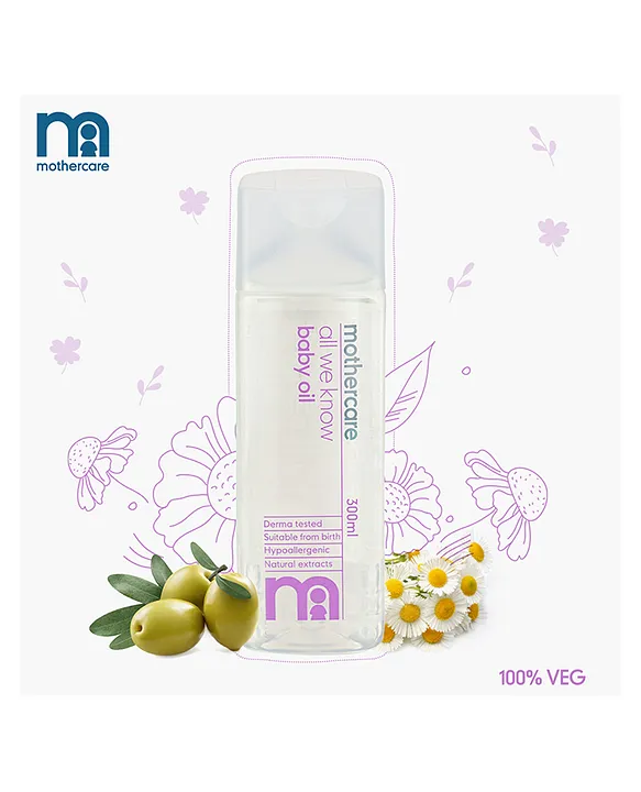 Pamper your little one with the gentle nourishment of Mothercare Baby All We Know Baby Body Oil. Enriched with the natural goodness of Olive Oil and Chamomile, this dermatologically and midwife-tested oil is specially formulated to protect, soothe, and moisturize your baby’s delicate skin.