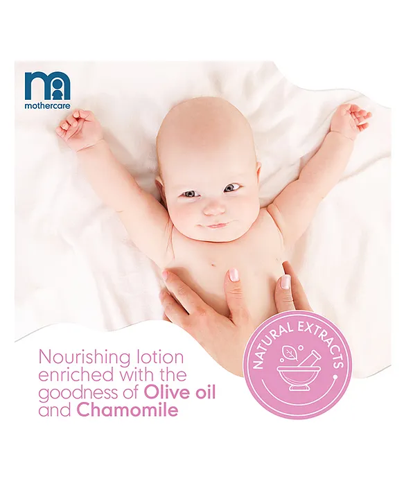 Enriched with Olive Oil (nature’s ultimate moisturizer) and Chamomile (renowned for its soothing qualities), this lotion hydrates your baby’s skin, leaving it silky smooth and smelling wonderful. Dermatologically tested, hypoallergenic, paraben-free, and midwife-approved, it is safe to use from birth and perfect for everyday skincare.