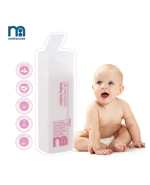 Keep your baby’s skin soft, nourished, and beautifully cared for with Mothercare Baby All We Know Baby Lotion. Its non-greasy formulation gently moisturizes and protects delicate skin while maintaining natural softness.