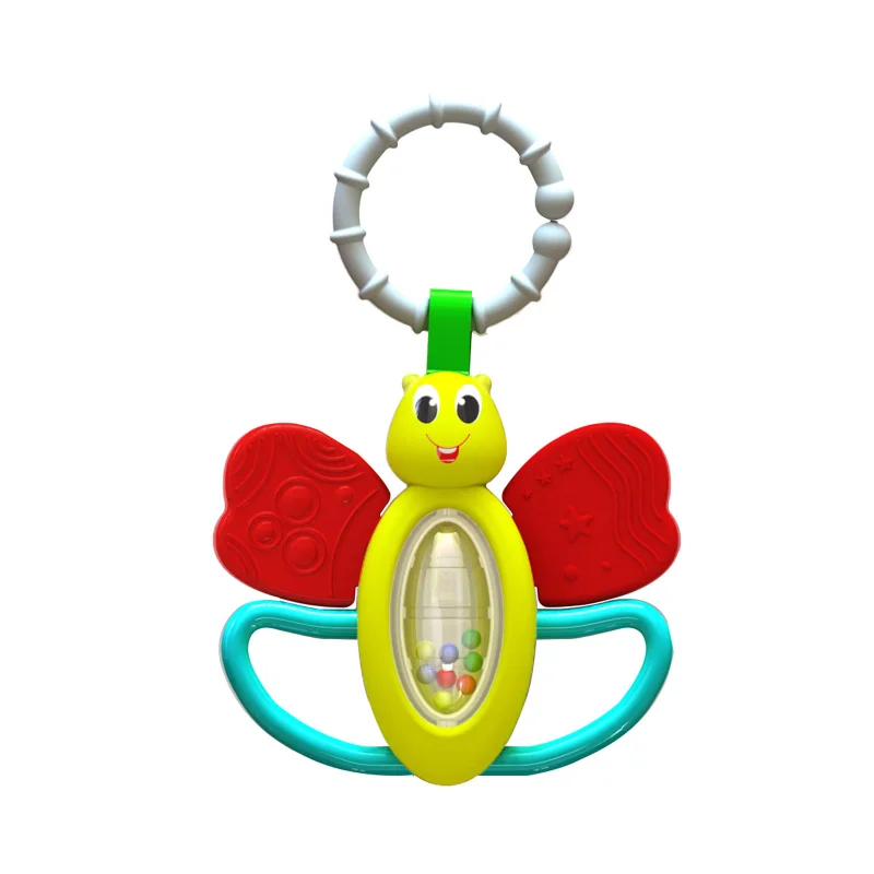 The gentle rattle sound grabs your baby’s attention, while the vibrant butterfly shape encourages fine and gross motor skill development as they reach, grasp, and shake. Meanwhile, the textured teether provides safe, soothing comfort for sore gums.