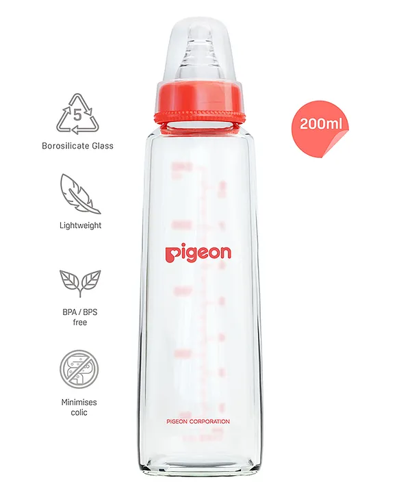 240 ml glass bottle with anti-colic nipple for older infants. BPA-free and available in Blue, Pink & Red.