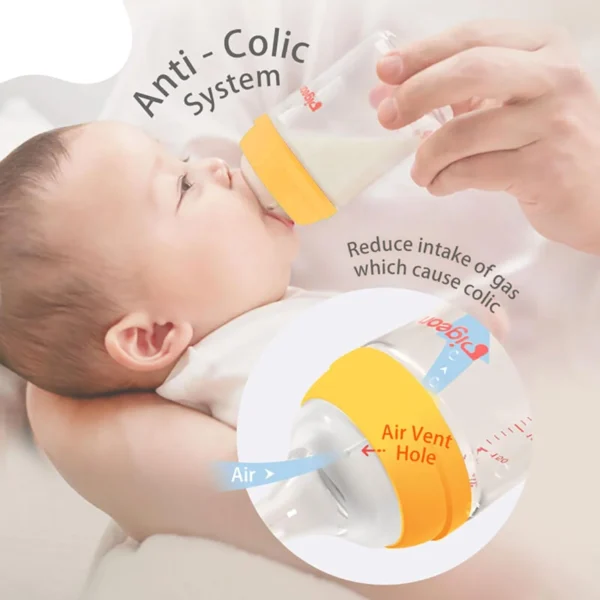 Equipped with a Plus-Type soft silicone nipple, it promotes a natural latch that feels just like breastfeeding. Its wide neck design allows easy pouring and cleaning, while the advanced anti-colic air venting system ensures minimal gas intake and smoother feeding. Available in Green and Yellow, it’s as bright and cheerful as your little one’s smile.