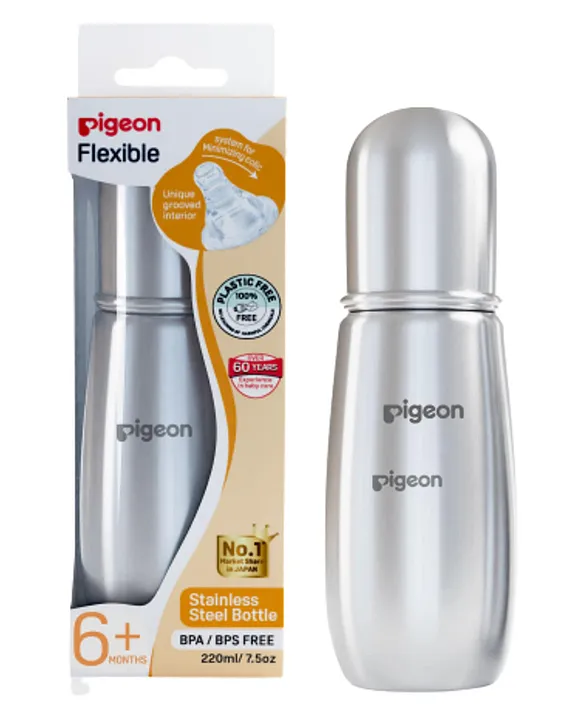 The Pigeon Steel Feeding Baby Bottle – 220 ml is specially designed for babies 6+ months, offering safe, hygienic, and comfortable feeding. Made from premium stainless steel, it is highly durable, lightweight, and resistant to breakage.