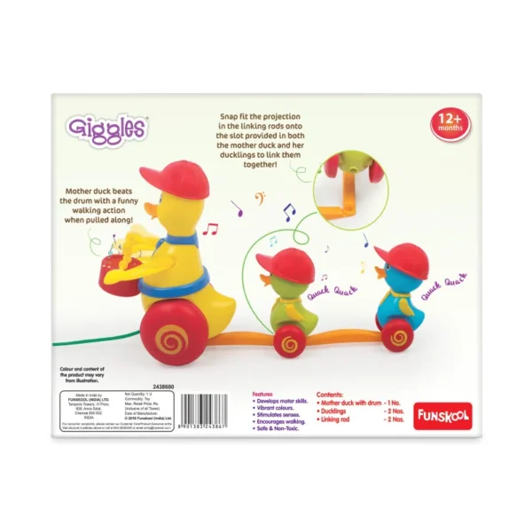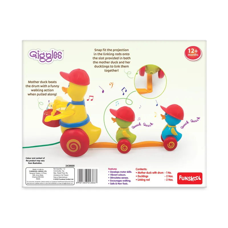 The Giggles Duck Parade makes a thoughtful gift for birthdays, milestones, and special occasions. Parents appreciate toys that support development, and kids love toys that move and respond. Pull along toys for toddlers are always a practical and fun gift choice.