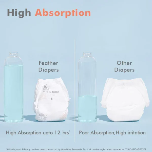 R for Rabbit diaper XS size brings soft comfort, strong absorption, and a gentle pant-style fit for newborns weighing up to 5 kg. These diapers are designed to keep tiny babies dry and protected through day and night. Parents look for diapers that feel soft, stay leakproof, and fit comfortably. This newborn diaper meets all those needs with a lightweight and feather-soft design.