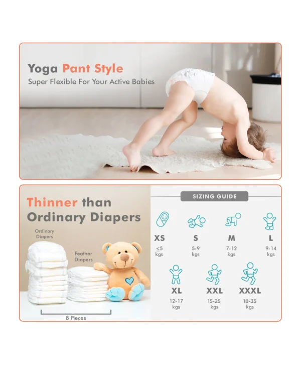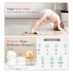 These XS diapers are made especially for newborns who need extra care. Their skin is soft and sensitive, so the diaper uses a breathable material that keeps the baby comfortable for hours. The pant-style design makes it easy for parents to put the diaper on and take it off. The flexible waistband gives a snug yet gentle fit around a newborn’s belly without leaving marks.