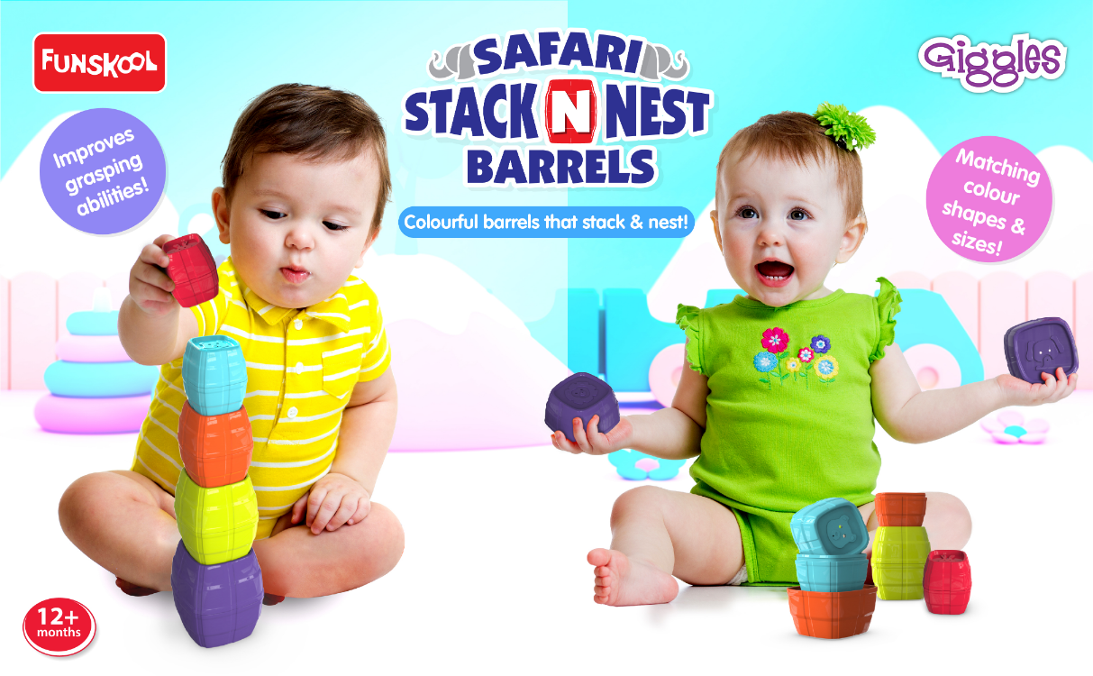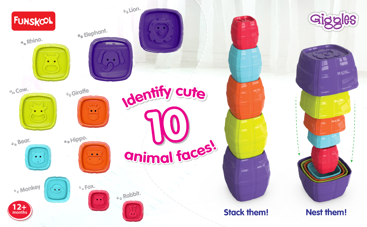 Let the stacking safari begin! The Safari Stack N Nest Barrels by Giggles is an exciting and educational toy that brings colors, animals, and sizes together in a fun-filled adventure for your toddler. Designed for children 12 months and above, this vibrant set encourages shape recognition, motor skills, and early problem-solving.