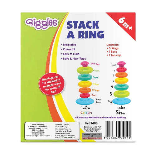 Introduce your child to a world of color, coordination, and creativity with Stack A Ring – the classic stacking toy that never goes out of style! This bright and colorful play set features multi-sized, easy-to-grasp rings that help your baby explore the concepts of size, shape, and balance.