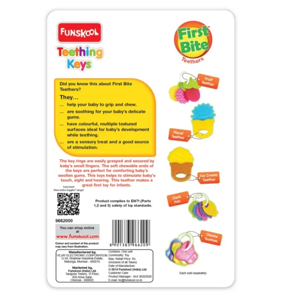 Whether at home or on the go, these lightweight keys make teething time a playful, soothing experience for babies aged 3 months and up.