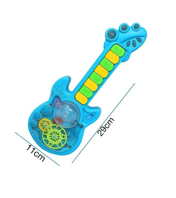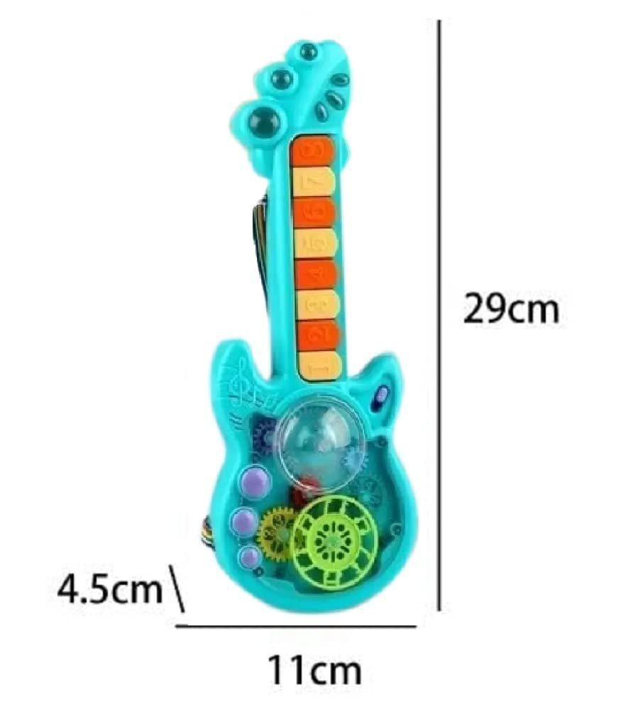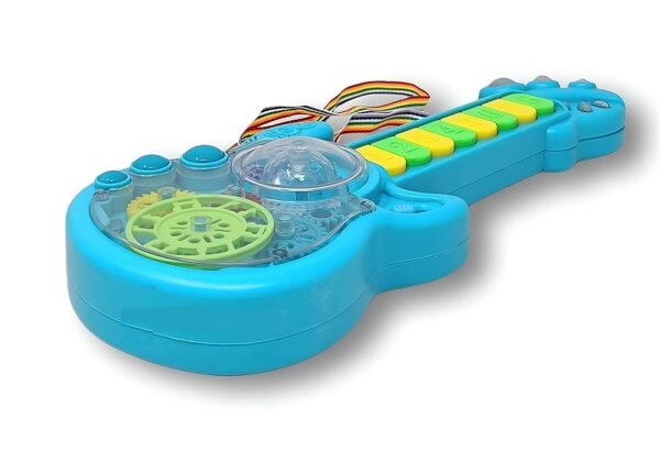 Children can use this toy throughout the day for music play, sensory exploration, or quiet-time activities. The lights provide visual stimulation, the rotating gears create motion learning, and the music supports rhythm development. The toy music guitar becomes a favorite part of playtime because it mixes movement, sound, and creativity so well.