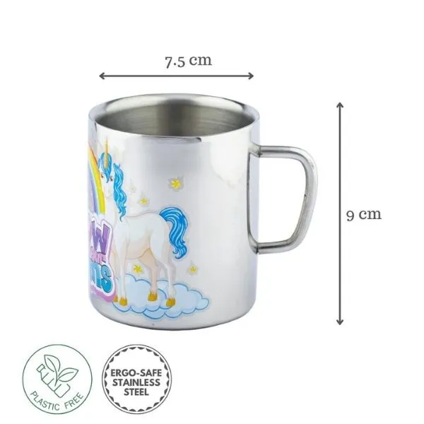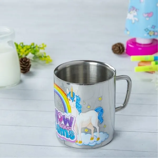 Add a splash of magic to your child’s day with this Unicorn Stainless Steel Colour Mug – a perfect blend of charm and durability. Made with food-grade stainless steel, it’s ideal for warm milk, water, or juice. The vibrant unicorn design makes it a favorite among kids, while the strong double-wall construction keeps drinks at the right temperature longer.