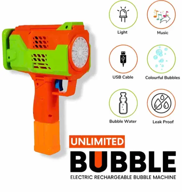It features a built-in rechargeable battery, eliminating the hassle of constantly replacing batteries. Whether it’s a sunny day in the garden, a birthday bash, or just fun at home, this bubble gun guarantees hours of joy.