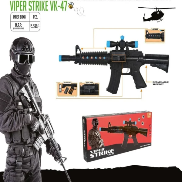 Unleash your inner marksman with the Viper Strike VK47, a sniper-style dart blaster built for kids who love long-range, stealth-style play. The toy rifle features a detachable scope, bolt-action loading, and a realistic sniper look that sparks the imagination.