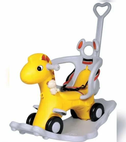 Crafted from durable, child-safe plastic, it features smooth wheels, a sturdy backrest, and easy-grip handles for safety and comfort. The bright yellow color and cute horse design instantly capture kids’ attention, making it a perfect indoor or outdoor play companion. Ideal for toddlers learning balance and coordination!